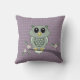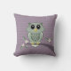 Custom American MoJo Throw Pillow 20" hat eine grüne Eule auf einem Glied mit Blume und einem lila Polka Dot Hintergrund.
