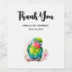 Vielen Dank Geburtstag oder andere Veranstaltung Flaschenschilder mit einer niedlichen Papagezeige. Ein kleiner grüner Papagei mit blauen und gelben Farbtönen, der sich harmonisch zusammenfügt. Neck hat einen lebendigen Schatten von rötlichem Rosa.