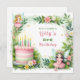 Lass’s tauchen in die bezaubernde Welt dieses skurrilen Fairy Birthday Designs ein. Das Bild enthält zwei reizvolle Feenfiguren. In der Umgebung der Feen und einer wunderschön geschmückten Geburtstagstorte blüht ein zauberhafter Garten mit illustrierten Blume in sanften Farbtönen. Die vorherrschenden Farbtöne sind beruhigende Grüntöne, die ein traumhaftes Ambiente schaffen. Das Bild ist perfekt, um einen kleinen Geburtstag zu feiern. Es erfasst die Unschuld und den Zauber der Kindheit.