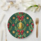 Green Pattern Gold Candle Poinsettia Flower Pappteller