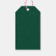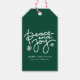Moderne Weihnachtsgeschenke mit der Phrase "Friede und Freude" in einem fett weißen Drehbuch mit Schneeflocken auf grünem Hintergrund. Personalisieren Sie die Weihnachtsgeschenktafeln mit Ihrem individuellen Gruß und Familiennamen. Die personalisierten Geschenketiketten kehren zu einem grünen Hintergrund mit subtilen schneebedeckten Punkten um.