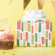 This pattern of broken rectangles feels like a tile mosaic in retro cool colors of pistachio green, emerald, deep coral, light peach and pale ice blue. This pattern is a great gerneric choice for any sort of gifting occasion from birthdays to babies to Christmas.