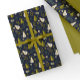 The pattern on this wrapping paper showcases beautifully hand-painted watercolor pears in lush green tones, surrounded by flowing leaves and subtle floral details. The deep navy background enhances the vibrancy of the artwork, creating a sophisticated botanical design that feels both organic and timeless.