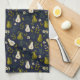 Green Pear Watercolor Pattern on Dark Blue Geschirrtuch