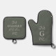 Green | Personalisierte Küche Ihres Namens Ofenhandschuh & Topflappen-Set