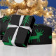 Green Pine Tree Schwarzes Weihnachtsmuster Geschenkpapier