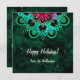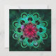 Dieses einzigartige quadratische Weihnachtsgeschmack zeigt eine große Aquarellmandala im oberen Drittel an der Vorderseite in Schmucktönen, Farbtönen von grün, rot, aquamarin, fuchsia, magenta und heiß rosa an einem tiefen Fichtenwald grüne Galaxie Hintergrund gefüllt mit Aquarellstern. Unterhalb der Mandala befindet sich ein individualisierbarer Urlaubsgruß und eine familiäre Unterschrift in Weiß in eleganter Schrift-Typografie für einen coolen handgeschriebenen Look. Im hinteren Teil befindet sich die Mandala in der Mitte, die auf demselben grün leuchtenden Hintergrund steht. Sie können dieses Element personalisieren, indem Sie den Text in der Produktvorlage ändern.