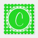 Grüne Punkte in nahen Vierteln erzeugen ein zweistelliges Muster weißer Sterne. Ein großer grüner Kreis ist von weißen Linien umgeben, während ein weißer Single die Mitte ziert.