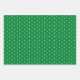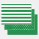 Dieses Set der Umhüllung Papierblätter verfügt über ein solides, grün gefärbtes Blatt mit koordinierenden Blättern von breiten grünen Streifen auf weiß, und weißen Polka Punkte auf grün.