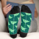 Vergnügliche Socken mit grünem Schirmmuster.