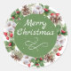 Green Red Floral Frohe Weihnachts Classic Round Sticker
