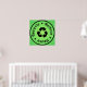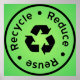 Reduzieren, wiederverwenden, Poster mit schwarzem Text Gerecycelt und Symbol auf einem ausgeblendeten grünen Hintergrund gerecycelt.