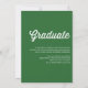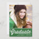 Mit diesem individuell gestaltbaren Foto Abschluss laden wir Sie zu Ihrer Veranstaltung ein. Es verfügt über ein Retro-fett formatiertes Skript und klassische Typografie. Personalisieren Sie diese, indem Sie Ihre Daten hinzufügen. Diese Einladung zum grünen Abschluss ist auch in anderen Karotten und Farben erhältlich.