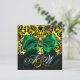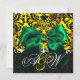 GREEN RIBBON GOLD YELLOW BLACK DAMASK MONOGRAMM EINLADUNG