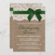 Green Ribbon on Burlap & Lace Erntedank Dinner Einladung