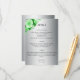 Planen Sie die perfekte Hochzeit? Lass deine Gäste mit unserer wunderschönen Silberfloralkarte in die Details ein! Mit einer silbernen Metallic und einem hübschen smaragdgrünen Rosenbukett in der oberen links Ecke wird diese Vintag inspiriert Karte Ihre Zeremonie noch attraktiver machen. Egal, ob Sie gewollt haben, wichtige Informationen zu geben, eine personalisierte Nachricht einzufügen oder Ihre Gäste an den Kleidercode der Hochzeit zu erinnern, diese Karte stellt sicher, dass alle Details notiert werden.