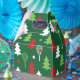 Grüne 💚 💔 🤍, rote, weiße Tennisweihnachtsmuster Fevor Box. Tennisschläger, Tennisbälle und Weihnachtsbäume auf grünem Hintergrund.