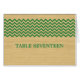 Moderne und trendige Rustikale Zickzack Tischnummer Card mit einem kunstbedruckten holzkörnigen Hintergrund und einem zackigen Zackenmuster aus dunkelgrünen Zickzack Streifen. Dieses Design ist perfekt für eine rustikale und dennoch elegante Hochzeit. Einfach anzupassen, fügen Sie einfach die passende Tischnummer(en) in das Textfeld ein. Klicken Sie auf "Anpassen", um weitere Personalisierungsoptionen zu erhalten.
