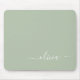 Green Sage Girly Script Monogram Name Modern Mousepad