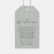 Schönes, elegantes und einfaches Meerglas-Grün mit schwarzem Text, minimalistisch Hochzeitsgeschenk-Tags. Vollständig anpassbar mit Namen, Datum und Nachricht auf der Vorderseite. Ideal für alle Ihre Hochzeitsgeschenke und Favoriten an Ihrem besonderen Tag.
