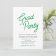 Diese Graduiertenparty-Einladung zeichnet sich durch ein einfaches Design aus, das mit grünem Schriftzeichen mit dem Aufdruck "Grad Party" versehen ist. Personalisiert mit all Ihren Abschluss Feiern Party Details.