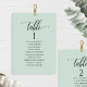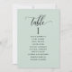 Helfen Sie Ihren Gästen, ihren Tisch mit dieser eleganten grünen, modernen Sitzplakatkarte mit den Namen der Gäste zu finden. Doppelseitige Karten, damit die Gäste von beiden Seiten, vorn oder hinten nach ihren Namen suchen können. Klare Platzverhältnisse, die Ihnen die Möglichkeit geben, Clips oder Lochausschnitte für hängende Displays zu verwenden oder Tischhalter/Rahmen zu verwenden. Zeichnen Sie grünen Hintergrund und schwarzen Text. Moderne handgeschriebene Kalligrafiedetails. Mehrere Farboptionen. Haben Sie alle Tischnummern in der gleichen Farbe oder mischen Sie die Farben nach dem Farbthema Ihres Events. Teil unserer Sammlung "Earth Tones Event Signs and Products" mit einer Vielzahl von Produkten zur Koordination, einschließlich Tischnummern und Menüs.