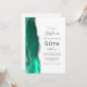 Die links Kulisse dieses eleganten und modernen 50. Geburtstagsfeiers mit einem ozeangrünen Aquarellstreifen, der mit silberfarbenem Imitat-Glitzer besticht. Der individuell anpassbare Text kombiniert handgeschriebene Holzkohle, Kupferplatte und kursiv Schriftart auf weißem Hintergrund. Fügen Sie auf der Kartenrückseite UAWG Anweisungen hinzu, und Sie können einen QR-Code scannen, um online zu antworten.