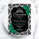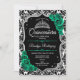 Green Silver Black Damask Elegantes Quinceanera Einladung