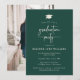 Green Simple Graduation Invitation. Our Elegant Simple Script Graduation Invitations blend sophistication with celebration. Each invitation boasts a classic graduation cap motif and a graceful hand-written calligraphy script. Available in various colors, including black and white, navy blue, dark green, dark red, purple, and gold, these invitations cater to every graduate's style. Elevate your announcement with personalized graduation photos and complement your event with coordinating items such as announcements, return address labels, envelopes, welcome signs, banners, yard signs, and tableware essentials like paper plates, napkins, cups, and can coolers. Celebrate this milestone in style with our trending collection.