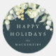 Green Snowberry+Eucalyptus Custom Message Holiday Runder Aufkleber