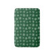 Ein Muster weißer Schneeflocken auf grünem Hintergrund.
