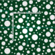 Ein Muster von weißen Flecken unterschiedlicher Größe auf einem waldgrünen Hintergrund.