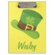 Diese robuste Acryl-Zwischenablage zeigt einen coolen St. Patrick's Day Hut, die Zwischenablage ist mit einem grünen Hut mit einem 4-Blatt Kleeblatt ausgestattet. Der Hintergrund ist gelb mit dem grünen Namen. Grafik von Prettygrafik Design (https://www.etsy.com/shop/Prettygrafikdesign)