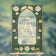 An elegant wedding welcome sign featuring a green stained glass design inspired by Art Nouveau floral patterns. Printed on sleek acrylic, this sophisticated sign creates a beautiful entrance display and adds a timeless, artistic touch to your wedding décor.