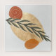 Ein inspiriertes Design von einfachen Formen in rustikalen Braun-, Beige- und Orangetönen mit einer floralen Pflanze als Schwerpunkt.