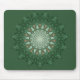 Mandala kosmische Diagramme inspirieren mit dünnen Linien und kompliziertem Weben. Das sich wiederholende, auffällige Muster schafft ein symmetrisches Design mit einer durchsichtigen Spitze wie visuell. Die Form folgt einer Zickzacklinie, die das ganze Bild an einen Stern erinnert. Die Farbauswahl ist frisch, basierend auf schönen Grüntönen mit einem diskreten Farbverlauf, der die Kraft der Natur, des Lebens, der Auferstehung, des Vertrauens nahe legt.