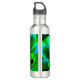 Stainless Steel Water Flasche stilisiert grüne Blume mit abstraktem Look, mit Fraktal-Tools erstellt mit spezifischen Formeln statt eine echte grüne Blume als Modell zu transformieren. Das Bild zeigt eine besondere Harmonie, bei der die Blätter in Kontur und Aussehen leicht voneinander abweichen, obwohl das gesamte Design aufgrund der verwendeten Fraktal-Geometrie perfekt harmonisiert ist. Die Blume hat auch eine besondere Dynamik, da alle ihre Blätter aus der Mitte der Form gezeichnet werden und sich bis zum Rand hin biegen, sodass die Mitte wie ein Drehzentrum ist. Insgesamt ist das Design eine schöne grüne abstrakte Corolla, die gerade eröffnet wurde, auf einem trüben Hintergrund in Grün.