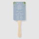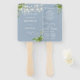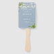 Dieser elegante, moderne, grüne Blumenstrauß-Lampen-Handventilator für Hochzeitsfeiern kann mit Ihren Informationen in der schicken Typografie auf einem staubblauen Hintergrund personalisiert werden. Entwickelt von Thisisnotme©