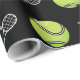 Cooles Tennis-Geschenkpapier mit Kugeln und Schlägern.