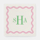 Green Three Letter Monogram with Pink Wavy Square Serviette