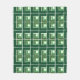 Diese mittelschwere Vlies-Decke hat ein geometrisches Design aus Ls in Grüntönen, die in verschiedenen Richtungen angeordnet sind und sich durch das Design wiederholen.