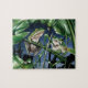 Das Design dieses Puzzles zeigt ein Bild eines grünen Baumfrosches über Wasser. Das Bild stammt von der Künstlerin Dawn Witherington.