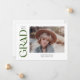 Diese stilvolle Abschluss-Ankündigung zeigt das Wort grad in einer grünen trendigen Serif entlang der links Seite. Die Vorderseite hat Platz für ein Foto des Abschlusses sowie ihren Namen, das Klassenzimmer und die Schule. Die Rückseite der Ankündigung hat Platz für ein zweites Foto und eine kurze Botschaft.