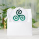 Green Triskele Symbol. Das Symbol Triskele oder Triskelion besteht aus drei Spiralen oder drei Armen, die miteinander verflochten sind, als ob es sich von seiner Mitte aus bewegt. Dieses keltische Symbol der Bewegung oder Handlung repräsentiert die drei Welten: die Himmelswelt, die physische und die spirituelle.