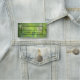 Modernes Namensschild-Design mit stilisierten Blätter aus Palmen auf einem angeschlagenen grünen Hintergrund mit einem gerahmten, schwarzen Rechteck in der Mitte mit Ihrem Namen und Ihrem Titel in modernen Kalligrafieschriften geschrieben. Der Text ist vollständig anpassbar.