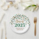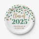 Maßgeschneiderte Graduierungsparty-Klasse von 2025 Tellern in glamourösem Gold und grünem Konfetti-Muster und elegantem handgeschriebenem Stil.