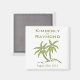 Ein schlichter und eleganter Hochzeitsmagnet mit zwei grünen Palmen. Die Namen der Braut & Gräuel liegen über der Baumkunst und das Hochzeitstag liegt unter den Bäumen. Dies könnte als Magnet für eine Save the Date Erinnerung oder für ein Hochzeitstag zu Gunsten nützlich sein. Es passt perfekt in jedes Thema der Hochzeit mit tropischen, seewärtigen, ozeanischen oder strandähnlichen Elementen.