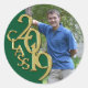 Klasse 2019 Abschluss Jahr Foto Aufkleber in Grün und Gold, ideal für Favoriten und Einladungen. Laden Sie einen bevorzugten Snapshot Ihres Absolventen hoch und fügen Sie Text hinzu, falls gewünscht.