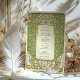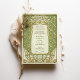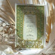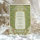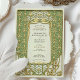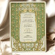 Dieses luxuriöse Jugendstil-Hochzeitsinklusive besticht durch einen faszinierenden Rahmen aus Gold und grünem Blumen, inspiriert durch die verzierte Eleganz des frühen 20. Jahrhunderts-Designs. Die zarten botanischen Muster, symmetrische Detaillierung und fließende Kurven schaffen eine Vintage, aber zeitlose Ästhetik. Die raffinierte Typografie harmoniert wunderbar mit dem dekorativen Rahmen und verleiht dem Ganzen ein Gefühl von Romantik und Eleganz. Auf der Kartenrückseite wird ein minimalistisches Monogramm-Emblem mit einem stilisierten Baum- und Bandmotiv dargestellt, das eine personalisierte künstlerische Touch verleiht. Ideal für Paare, die eine klassische, Vintag inspirierte Hochzeitseinladung mit einem raffinierten und eleganten Stil suchen.