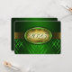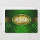 Grün und gold Abschluss mit hellgrünen Streifen und einem goldenen Band, das das Jahr des Abschlusses zeigt. Die Rückseite der Karte ist grün mit hellgoldenem Schriftart, damit die Leute die Graduierungsankündigungen ausfüllen können.